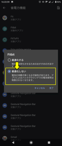 Fitbitアプリをスマホの省電力機能の対象から外す